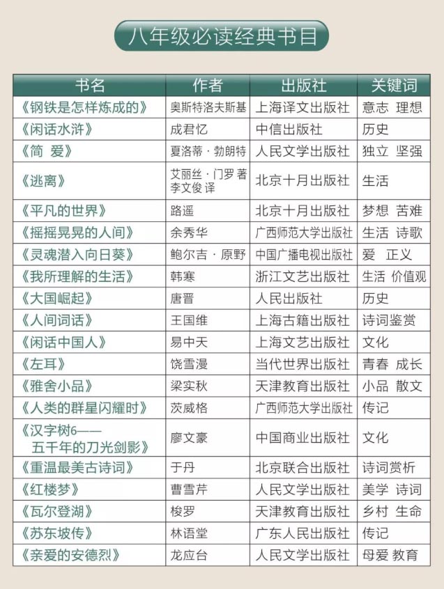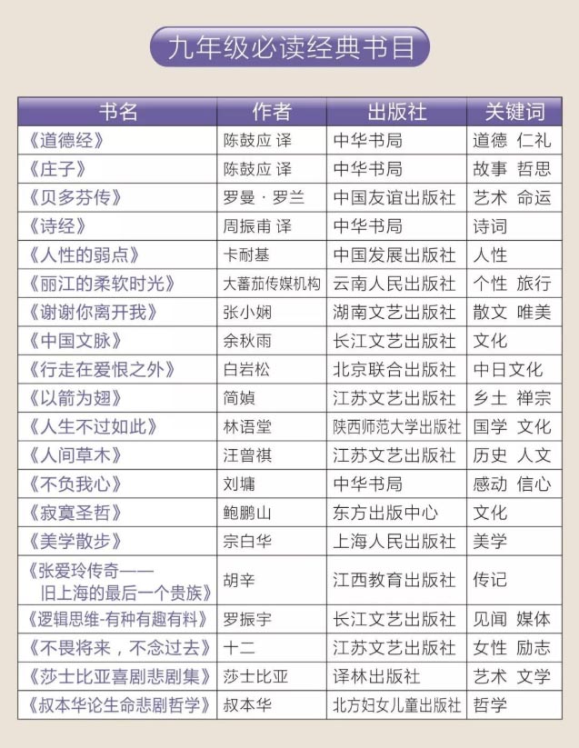 人民日报整理1-9年级必读经典书目149本,附高清PDF(建议收藏)